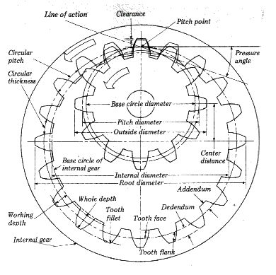 - Base Circle diameter ( D b ) ...... The diameter on which the involute teeth profile is based.