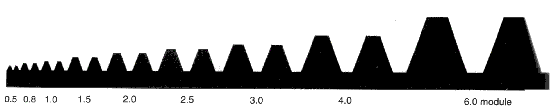 are directly proportion . e.g. 2mm module teeth are 2 x this profile