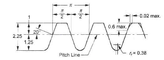 - Circular pitch (p)...... The distance between adjacent teeth measured along the are at the